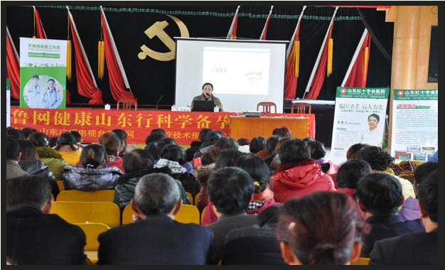 2015年3月27日上午,山东广播电视台齐鲁网与东阿县计生办共同举办的健康山东行科学备孕公益讲座在东阿陈集乡举行,山东红十字会医院专家潘慧贞、丁少泉主任讲解健康备孕和生殖健康知识。