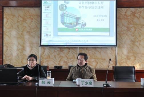 2015年10月29日上午,山东广播电视台齐鲁网与东阿县计生办共同举办的健康山东行科学备孕公益讲座在潍坊市寒亭区高里街道计生站举行,山东红十字会医院专家郝云主任讲解健康备孕和生殖健康知识。