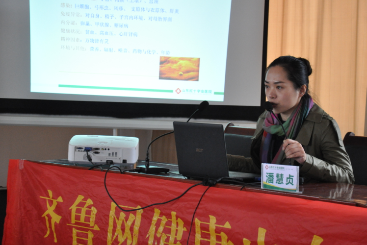 2015年4月1日,“齐鲁网山东健康行科学备孕公益讲座”暨“新农村 新生活 关爱女性健康大讲堂”,在青州开发区东夏镇举行。齐鲁网特邀生殖健康专家山东红十字会医院潘慧贞主任参加讲座,为当地居民普及了生殖健康知识和科学备孕知识。